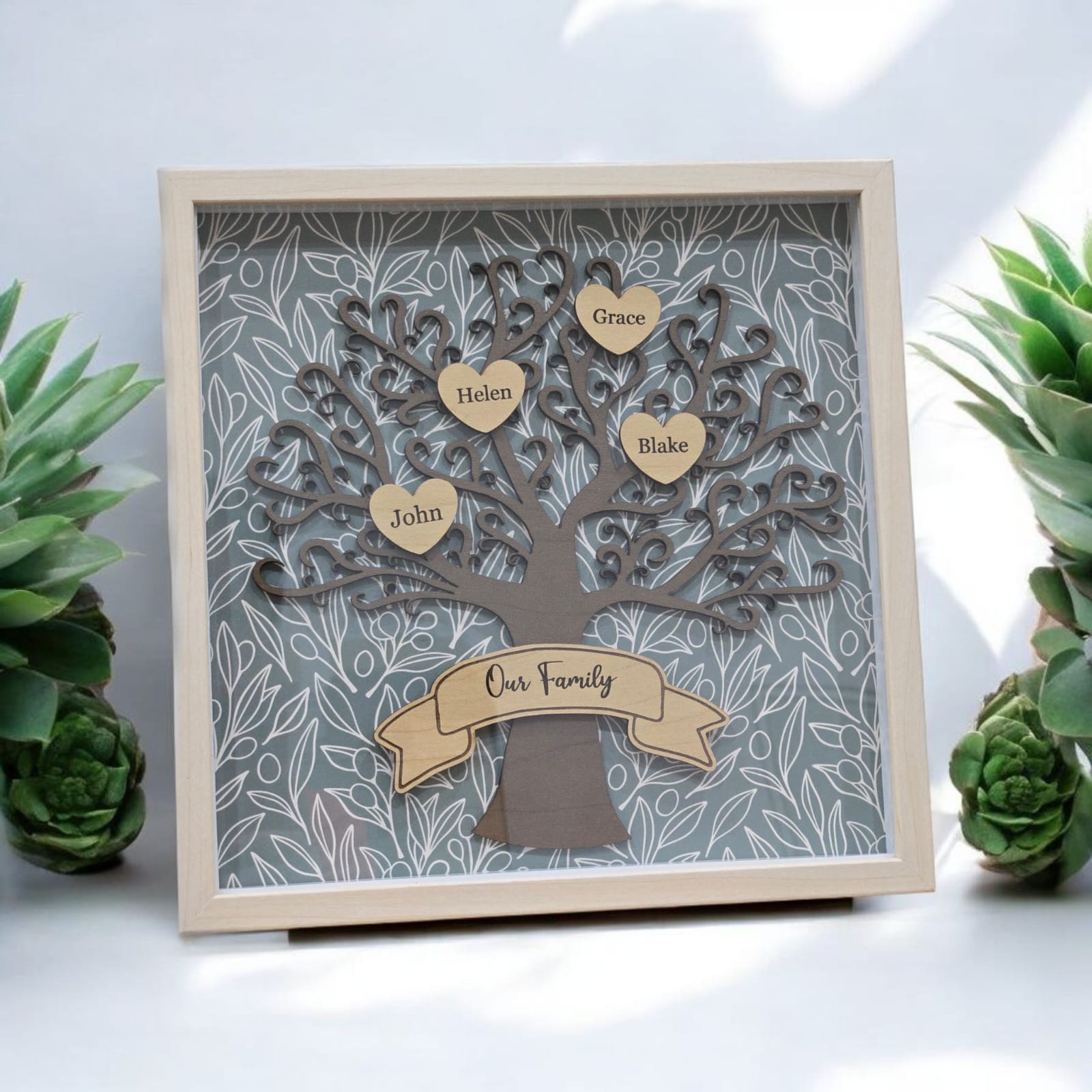 Whimsical Family Tree Frame – Personalized with Engraved Hearts and Banner